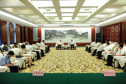 仪式前,陈敏尔省长亲切会见复旦大学代表团一行。陈敏尔向复旦客人介绍了贵州省发展的有关情况,杨玉良介绍了复旦大学有关情况。杨校长表示,希望以此次签约为契机,将复旦的特色学科如大数据研究、智慧物流研究、生态环境与气候变化研究等领域的成果更多的服务贵州,重在落实,为贵州的发展乃至国家的发展贡献作为大学的应有之力。