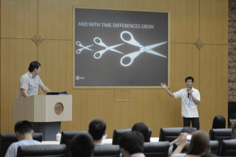 闭幕式的最后,国务学院党委副书记方明老师公布了2015年YICGG主题“Humanity in E-world”。当今青年学子大多出生于1982年之后,即个人电脑诞生之后,成长道路由电脑与互联网相伴,他们因此被称为“网络一代”。这样一代人将用他们独特的视角去解读信息化时代,探寻信息技术,尤其是互联网,给整个人类社会带来的变化,从交往方式到生存环境,乃至我们自身。而“Humanity in E-world”这一主题正是旨在引导青年学子关注信息化时代的一系列关系问题,例如技术与人文、高科技与后工业社会、网络使用与社会环境、网络体系与全球化等等,通过问题的挖掘、研究和尝试解决,唤起他们在前所未有的时代背景下推动人类文明进程的世界公民责任意识。
