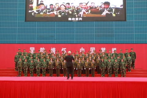 2014年9月1日下午,“国防情怀 中国梦想”复旦大学军训团、哈军工上海校友会合唱团主题歌会在复旦大学正大体育馆隆重举行。主题歌会以增强理想信念和国防观念、弘扬爱国荣校光荣传统为主旨,以纪念邓小平同志诞辰110周年为主线,通过老少同台、艺术对话的形式,共同抒发中华儿女热爱祖国、保卫家园、矢志奋斗、实现复兴的真挚情怀。复旦大学党委副书记刘承功,哈军工上海校友会会长周晓临,名誉理事、南南国际贸易促进中心主席耿弘,合唱团团长梁亮,复旦大学2013级学生军训团团长沈振威,党委宣传部、学生工作部、武装部、总务处等职能部门领导和各院系学生工作主要负责人等出席并观看歌会。