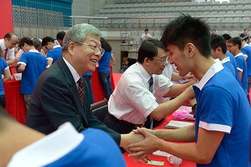 9月12日上午,复旦大学2014级研究生开学典礼在正大体育馆隆重举行,来自五湖四海的全体研究生新生参加了开学典礼。校党政领导,学术委员会、教学指导委员会、学位评定委员会负责人以及各院系和职能部处负责人应邀出席典礼。