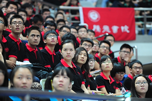 校党政领导、各书院院长、2014级本科生导师、各院系及有关部处负责人、教师代表以及全国部分中学校长代表等出席了当天的新生开学典礼。