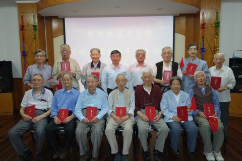 9月24日上午,我校邯郸校区老年活动中心红旗飘飘,张灯结彩,老干部庆祝建国65周年荣誉纪念证书颁发仪式正在这里举行。邯郸校区老干部、老干部工作处全体工作人员一共五十多位同志欢聚一堂,喜迎祖国65华诞。校党委副书记陈立民同志出席了颁发仪式。