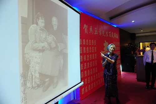 马玉章先生生于1914年,其祖父是中国著名教育家、复旦大学创始人和震旦大学首任校长马相伯先生。马玉章和马相伯共同生活了25个春秋,她目睹或亲历了这位著名“爱国老人”的许多重大政治社会活动。作为一名复旦校友,马玉章先生是为数不多尚仍健在的复旦百余年校史的见证者。老人身体硬朗,2005年曾作为重要嘉宾出席复旦大学百年校庆。在今日庆典上,马玉章先生长女马百龄介绍了马玉章先生的百年历程。