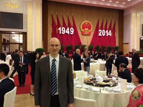 庆祝中华人民共和国成立65周年外国专家招待会9月28日晚在人民大会堂举行。中共中央政治局常委、中央书记处书记刘云山出席并致辞,代表中国政府,代表习近平主席,向所有关心、支持、参与中国改革建设事业的外国专家和国际友人表示衷心感谢和诚挚问候。我校计算系统生物学中心外籍专家David Waxman教授受邀参加活动。