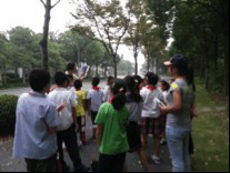 在参观湿地的一路上,学生们兴致高昂,拿着老师给的地图不时地查看自己所处的位置并积极地提问。有些学生虽然以前来过湿地,但这次和同学们一起参观还是让他们特别兴奋。学生们热烈地讨论着看到的各种新奇的动植物,激动地描述给身边的同学,并及时把它们画在自己的观察单上。有同学好奇蚱蜢的胸前怎么有红色的部分,还有同学对于树上长的类似小西红柿的东西非常感兴趣,他们都不断地向身边的志愿者们提问。志愿者们则积极去引导他们思考,让他们深入细致地观察湿地动植物的特点,同时不忘在整个过程中保障学生们的安全。