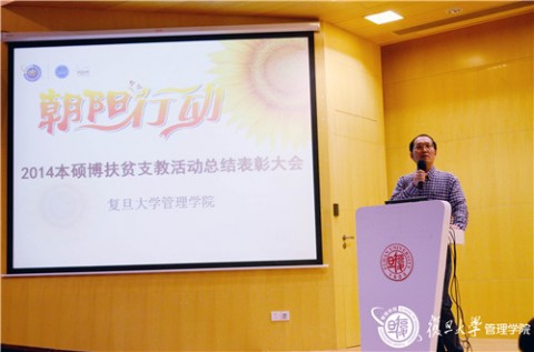 2014年10月14日,管理学院首届“朝阳行动”本硕博扶贫支教总结表彰大会在李达三楼2楼报告厅举行,2013级全体本科生、2013级部分硕博连读学生和实践导师共同出席大会。