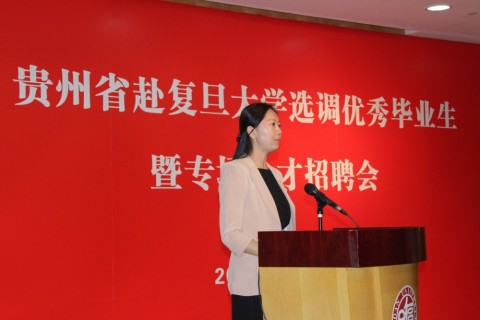 2014年10月23日上午9时,贵州省赴复旦大学选调优秀毕业生暨专场人才招聘会于光华楼学生广场顺利举行。贵州省副省长何力、复旦大学党委副书记尹冬梅等出席了本场招聘会并致辞。