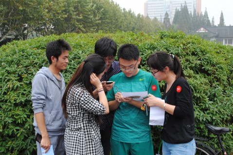 下午两点整,比赛正式开始。比赛范围设定在邯郸校区,包括本部、北区及今年的新增南区,分为目标寻找、校史校情知识问答、团队游戏、图册敲章等环节。参赛队员们以院系为单位,5人一组,需经过设在校园内的8个目标点取得9个信封后返回起点。