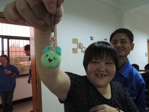 短暂的休息与谈心之后,手工课(软陶制作)开始了。学员们对此表现出了极大的热情,非常认真的听取志愿者的讲解,并积极的配合志愿者制作出一只只可爱的“小怪兽”。软陶烤制定型后,学员们兴奋地和志愿者分享与交流着制作的心得与体会。