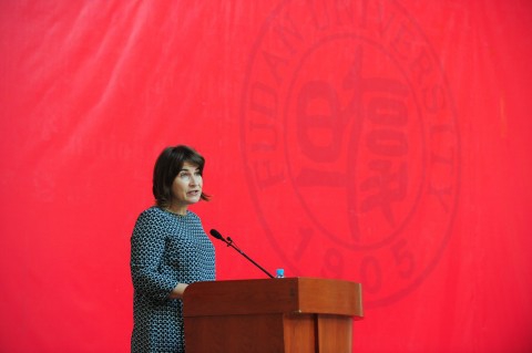 2014年10月28日上午,荷兰外贸和发展合作部长普璐曼(H.E. Ms. Lilianne Ploumen)女士做客复旦大学,就中荷对外援助合作,贸易投资发展做了题为“从单一的“传统发展援助”过渡到复合型‘援助、贸易及投资一体化”的演讲。并与师生进行深入互动讨论。讲座吸引了来自复旦、东华、上外等高校和欧洲商会约150余名校内外师生和听众等参加。
