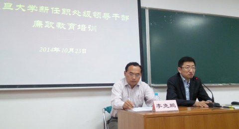 10月23日,校纪委组织了新任职处级领导干部廉政教育培训。38位新任处级领导干部参加培训,其中,30位新任职领导干部签订了《复旦大学党员领导干部廉洁从政承诺书》。此次培训是中央巡视组对我校专项巡视后举办的新任处级领导干部廉政教育培训,校纪委增强了培训内容的针对性,突出培训重点,安排了党风廉政理论自学、知识测试和案例教育、警示教育等多种形式,要求学员结合承担的党风廉政建设岗位职责撰写培训小结,进一步增强领导干部的廉洁自律和党风廉政责任意识,切实落实党风廉政建设责任制。