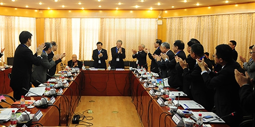 2014年11月14日,复旦大学第五届董事会第四次会议在复旦大学枫林校区治道楼召开,来自国内外二十多位校董及校董代表出席了会议。