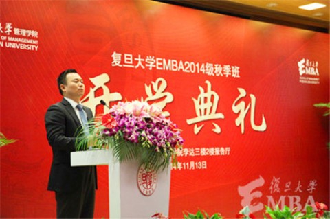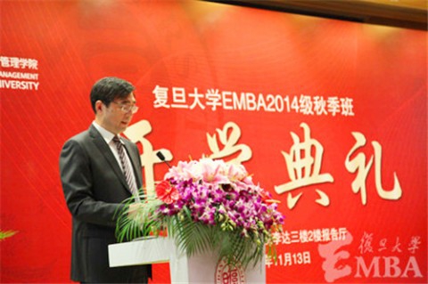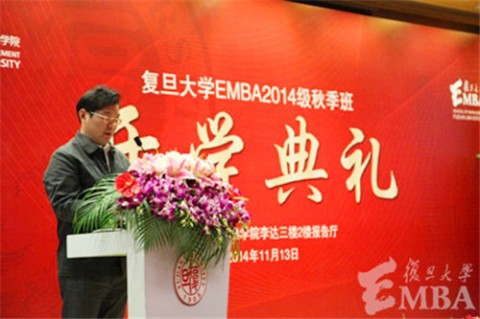 我校研究生院副院长楚永全首先致辞。他表示,复旦大学即将迎来建校110周年的重要时刻,一百多年来一代又一代复旦人的奋斗与努力,使得复旦大学成为世界知名的高等学府。“作为事业有成而回炉学习的复旦EMBA新生们,不仅应当具有荣誉感,更应心怀使命,担负起社会的责任。在中国面临经济转型的今天,复旦EMBA学子不仅是有丰富管理知识的企业领导者,更应该是兼具企业家精神和人文素养的社会进步引领者。”