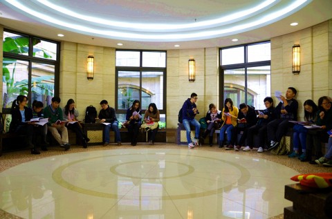 实践活动结束后,小组长聂含秋提议在江湾智华楼圆厅进行党课自修、党章学习,真正做到用理论反思实践、用实践体会理论,组员们回应热烈,并在随后的讨论中踊跃发言。