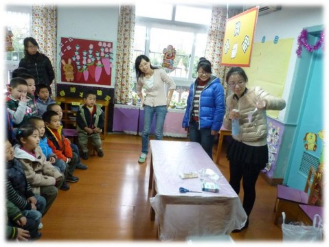 “走进童心世界,点燃科学热情”是化学系2012级博士生党支部的特色实践项目。该项目以化学学科内容为前提,在这一年中,通过走进复旦幼儿园以及小学,向小朋友们展示科学中有趣的科学现象,来点燃他们对科学的热爱。比如党员们根据自己专业的特点,运用化学试剂的组合与小朋友们玩起了“写密信”的游戏。同时还鼓励小朋友积极参与知识问答,“争做小小科学家”。通过对幼儿园小朋友的服务,既可以使孩子们体会科学的奥妙,增长见识,又可以使参与其中的同学在实践中体会奉献的快乐。这一实践项目充分体现出了化学系党支部“结合专业,寓教于乐,服务社会”的支部特色。