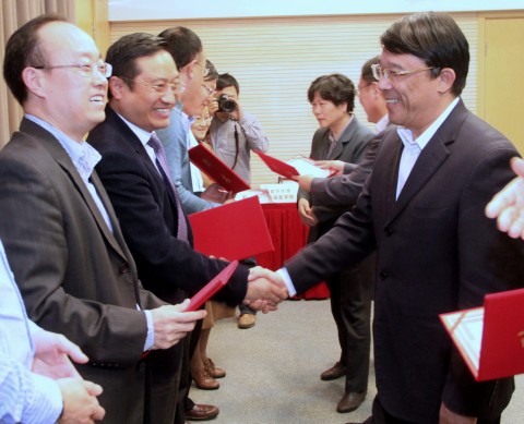 签约仪式后,举行了简短的中山医院首批基础医学院双聘教授授证仪式,本次被聘为基础医学院教授的专家分别是中山医院骨科阎作勤、肝外科周俭、神经外科张晓彪、放射科曾蒙苏、病理科侯英勇、普外科孙益红与内镜中心周平红。朱之文书记、桂永浩副校长、汪玲副院长、汤其群院长代表校、院领导为双聘教授代表颁发聘书。首批双聘教授将立即参与基础医学院人体解剖学与病理学的教学与科研工作,标志着双方合作已实质性启动。
