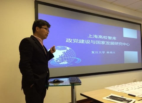 紧接着,专家们认真听取了中心主任兼首席专家林尚立教授对智库建设情况的汇报,对中心一年来的工作思路、所取得的成果以及未来的工作设想都作了充分的肯定。