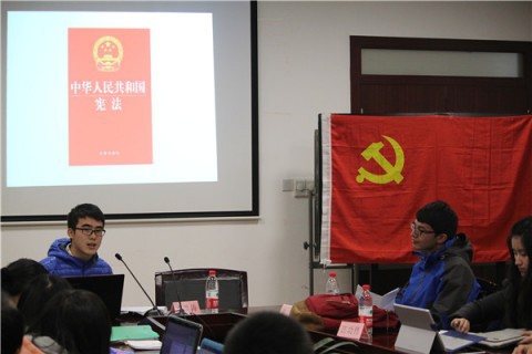 各本科生党支部积极响应学校号召,围绕宪法学习举行专题组织生活,以实际行动带领身边同学共同学习宪法。法学院2012级本科生党支部组织全体党员学习了《关于全面推进依法治国若干重大问题的决定》中与依法治国、依宪执政相关的内容,并展开了深入的讨论。同学们表示:“宪法是我国的根本大法,但由于宪法的非诉讼性,其地位一直没有收到应有的重视。为宪法设立一个专门节日,有利于推进宪法理念的传递,发挥宪法的作用,维护宪法的权威。”经济学院组织学生党员从“依法治国进程的回顾与展望”、“拓宽公民有序参与立法途径”、“依法治国为经济转型提供的制度保障”等多个角度开展调研,并将调研成果向班级同学进行展示,鼓励支部成员进一步了解时事、深入学习十八届四中全会的精神。参与组织生活的党员认为:“宪法作为我国根本法,享有最高的法律地位和权威性。通过设立宪法日并开展各项学习、宣传、服务活动,使宪法更加贴近人民生活,有利于形成法治认同,使宪法真正走进人民心中。”