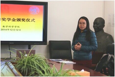 12月12日,数学科学学院2014年度方江辉奖学金、蔡同玙奖学金颁奖仪式在光华楼东主楼1513举行。