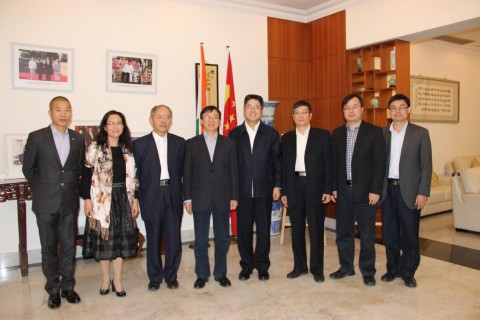 在新德里,代表团参访了中国驻印度大使馆。乐玉成大使在大使官邸会见并招待了代表团一行,就印度外交政策和中印关系进行了深入的交流。吴心伯教授应邀在使馆作了当前国际形势的报告,并回答了使馆工作人员的提问。