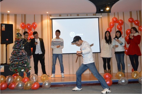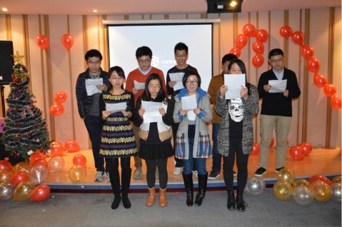 晚会于18:30正式开始,伴随着活泼欢快的圣诞歌曲《铃儿响叮当》,第八组的同学首先登台亮相。整齐划一的步伐、反复变化的队形、可爱调皮的动作将现场的气氛迅速点燃。紧接着的是第五组同学带来的舞蹈《阿凡达与屌丝男的真爱舞》,动感的音乐、创新的编排、搞笑的舞步引起了在场观众的阵阵欢呼,台下的同学也不由自主地跟着他们一起舞动起来,整个房间瞬间成了一片欢乐的海洋。随后,第一组的同学合唱了歌曲《精忠报国》,震撼人心的旋律、壮丽恢弘的气势,悲愤苍凉的基调配上刚劲有力、行云流水的双截棍表演,让在场的所有人都热血沸腾,惊叹不已。第六小组和第七组分别为大家带来了歌曲《童年》和《盛夏的果实》,在温柔婉转的歌声中,大家仿佛回到3个月前相遇的那个夏天,勾起回忆无限。第二组的情景剧《江湾生活万花筒》展现了这半年来我们共同度过的美好瞬间。程希茜和李博雯同学表演的钢琴与小提琴合奏曲《神秘园》让优美的音符流淌在每个人心间,罗霖与鲍亨利的热舞更是将整个晚会的气氛推向了高潮。