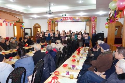联欢会在社政学院研究生《恭喜恭喜》的小合唱中拉开帷幕。社政学院的学子演出结束后还为与会的老干部送上了新年的祝福礼物——他们自己制作的精美贺卡。老干部张守庠老师独唱的《洪湖水浪打浪》、老干部子女与家属献唱的《百灵鸟》与《送花楼会》、全体老干部合唱的《革命人永远是年轻》等精彩节目博得阵阵喝彩。老干部工作人员用诗朗诵《贺祖国65华诞》与合唱《打靶归来》表达了对全体老同志新年的祝福。联欢会中间还穿插了抽奖环节。三位90岁以上的老干部分别为大家抽取了健康奖、温馨奖、幸福奖,使得联欢会的气氛一浪高过一浪。最后,本场联欢会在全体老同志高唱《夕阳红》的歌声中圆满落下帷幕。