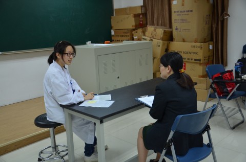 ——一天里做十几遍的表演,每一遍都有细微变化但都必须符合病症反映的逻辑;一个医科生问十几项症状,每一次的应答都要把握疾病症状的重点……潮湿的手、冰凉的听诊器、按压错位、叩诊过重、不顾私密……一切不适引起的心理上的排斥都在 “标准化病人” 角色的要求里容忍下来,感觉扮演标准化病人其实需要一点点伟大的情操和忘我的境界!