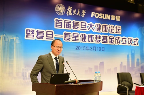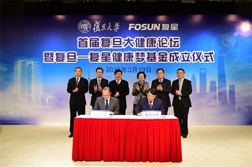 3月19日-上海,首届复旦大健康论坛暨“复旦-复星健康梦基金”成立签约仪式在复旦大学举行。为感恩母校培养,在新常态下助力国家医疗卫生发展和改革,促进医学研究高效推进大健康产业发展, 复星集团通过上海复星公益基金会在复旦大学110周年校庆之际,捐赠1亿元人民币设立“复旦-复星健康梦基金”。该基金主要将用于建设复旦大学“一号医学科研楼”(命名为复星医学科研楼),支持复旦医科发展战略以及奖励在医学科研、创新管理、成果转化和教育发展等领域的杰出团队和个人。