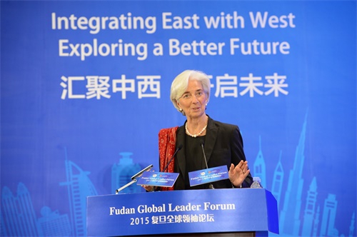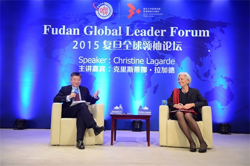 3月20日下午,复旦大学管理学院30周年首场论坛“2015复旦全球领袖论坛”在光华楼隆重开幕。国际货币基金组织(IMF)总裁克里斯蒂娜·拉加德女士莅临复旦大学,作为学院30周年首场论坛的重要嘉宾发表了主题演讲。