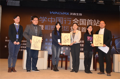 随后,本次“科学中国行”最受观众期待的“跨界”对话在颜宁教授和徐英瑾教授之间展开,双方根据自己的学科背景各抒己见,并均以发展的眼光看问题。主持人李辉教授则充分实践“他山之石,可以攻玉”的理念,在两者的观念中寻找契合点,并提出了自己的见解。最终,双方均认为“科学中蕴含着永恒的美”。22:00,讲座在热烈的气氛中圆满结束。