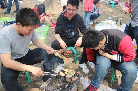 这一天,天朗气清,惠风和畅。上午9点半,同学们在廖凯原法学楼广场前集合,随后,班长安排各小组组长带领大家陆续到达目的地。游人如织的共青森林公园绿草如茵,鸟语花香,此地有湖泊丘陵,茂林修竹,又有清流小径,映带左右。同学们首先来到烧烤区进行野炊活动,为了保有一席之地,先遣小分队早早地前去占好“山头”。在大部队到来之后,同学们立刻开始行动起来,铺薄膜、支烤架、点炉子、串食物……大家分工协作,密切配合,忙得不亦乐乎。在袅袅炊烟升起之时,鸡翅、肉片、土豆、玉米等美食的香味也扑鼻而来,引得众人胃口大开,口水直流。易智新的“大师烤肉”更是打响了品牌,大家争先恐后地“预定”,只为一饱口福。整个活动现场热火朝天、井然有序,同学们沉浸在欢乐的气氛中。