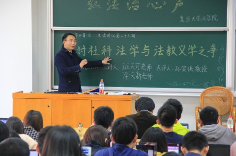 首先,法学院民法专家班天可上台发表自己对社科法学与法教义学的看法。班老师作为第一个上台主讲的老师,首先和大家简要地介绍了一下社科法学与法教义学对立争论的基本情况,并且还介绍了法教义学的基本立场;之后又重点介绍了单纯的法教义学的相关问题和危害,并且还引用了实际生活中一些生动有趣的小例子。