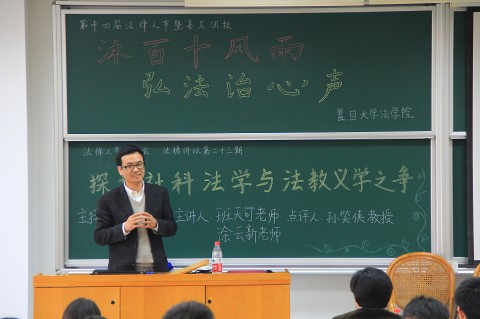 4月21日,第十四届法律人节正式开幕。本次开幕式邀请到复旦大学法学院院长孙笑侠教授、涂云新老师、班天可老师作为嘉宾,围绕“社科法学与教义法学之争”进行讨论。“沐百十风雨,弘法治心声”,第十四届法律人节以一场学术争论拉开大幕。
