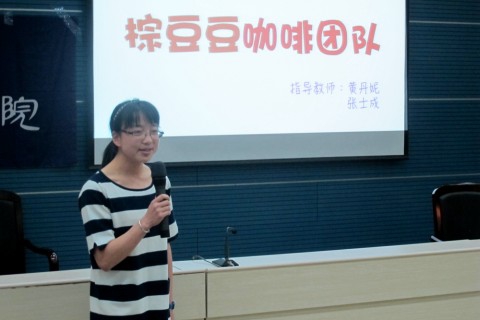 第三个上场的是棕豆豆咖啡匣团队。一开场,他们就打出了“让希德人真正成为一家人”的理念,并围绕这个主题,介绍了他们的各项诸如师生共饮的主题活动。他们还设计了每月都有的男生节和女生节,介绍了每一位棕豆豆成员,亲切的风格惹人喜爱。
