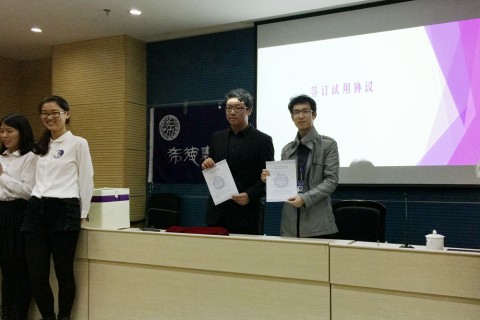在唱票员,监票员、计票员的配合,以及全体评委的监督下,结果在大屏幕上一点点变化着,全场摒气凝声,等待着最终的结果。最后,“狮紫座”团队以最高分成功夺得接下来一年的咖啡吧经营权,并与希德书院监委会现场签订了试用协议。