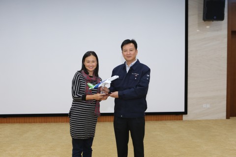 沙龙开始前,与会嘉宾在上海飞机制造有限公司党委书记肖云先生的带领下参观了中国商飞的飞机制造车间,观看了介绍中国商飞发展历程和主要机型的宣传片,肖云书记代表中国商飞向复旦大学中国金融家俱乐部赠送了最新机型C919模型。