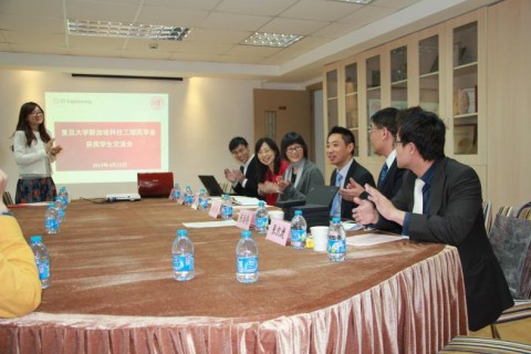 4月22日中午,2013-2014学年复旦大学新加坡科技工程奖学金获奖学生交流大会在邯郸校区1号楼218会议室顺利举行。新加坡科技动力(以下简称“新科动力”)人力资源副总裁潘宏羽先生,新科动力人力资源副经理陈治伦先生,校对外联络与发展处处长潘俊老师,校党委学生工作部副部长郭娟老师等出席,全校11名新加坡科技工程奖学金获奖学生参加了此次交流会。