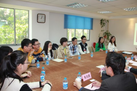 交流仪式上,潘宏羽先生首先表达了对复旦大学长期以来对新科工程奖学金的设立、评选、颁发等一系列支持工作的感谢;其次鼓励获奖同学再接再厉,在学习成绩、个人成长、社会责任等方面继续努力;同时要和新科公司一样勇于创新,不断突破自己,追求更高的目标,取得更长远更全面的发展。随后陈治伦先生为复旦师生详细介绍了新加坡科技公司的历史沿革、业务范围、公司架构,并重点介绍了暑期赴新科公司的实习项目,引起了获奖同学的浓厚兴趣。之后,管理学院2011级会计学专业的闫喆同学为大家分享了2014年暑假赴新科公司的实习体验,生动活泼的语言,幽默风趣的经历让交流现场欢声笑语不断,更激发了获奖同学对暑期实习的向往,有多位同学表示了暑期申请新科公司实习的意愿,潘宏羽先生当场表示欢迎。