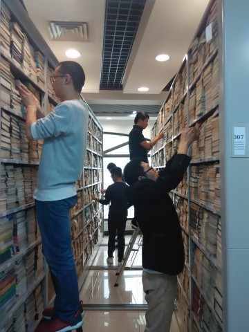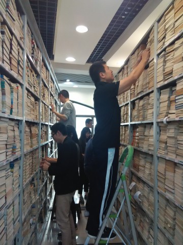 何妮娜、吴丽敏作为本次活动中仅有的两名女组员,发挥她们耐心细致的性格特点,为图书馆找出并整理好了相应的错架图书。孙林浩、王睿两位组员负责二楼阅览室“牛皮癣”的清除工作。而周康、张华凤和王钢三位组员认领到了“最苦最累的”密集书库书架整理工作。尽管书架整理任务繁重,但是三位组员依旧不辞辛劳,认真整理。令人感动的是,在知道书架整理工作繁重之后,其他组员在完成自己相应的实践活动后,均不约而同地主动来到密集书库,与之前三位组员一道,齐心协力,共同整理。这无疑体现了法学院党校小组组员之间深厚的情谊与团结的奉献精神,在场的工作人员均对小组组员竖起了大拇指!