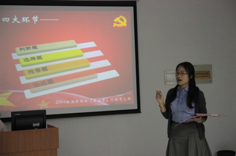 知识竞赛在主持人介绍完规则后正式开始。第一轮是判断题,看哪个小组在规定的时间里做出的正确判断最多,大家聚精会神、争分夺秒、不相上下,这一轮结束后,第三小组暂时领先;第二轮是选择题,各小组的同学团结协作、共同商量答案,最终第一小组的同学凭借扎实的知识储备赢得了本轮的胜利;第三轮是抢答题,抢答的形式充分调动了大家的积极性,每个人都胸有成竹、跃跃欲试,由于很多同学几乎同一时间起身抢答,难以辨别先后顺序,为了公平起见,主持人临时改变比赛规则,但这丝毫没有影响大家的积极性,抢答活动井然有序地进行着。第四轮是论述题,这一轮给个人提供了展示风采、大显身手的机会,在主持人公布全部题目后,每个小组派出一名代表从中选择一题进行3分钟的论述,第四小组的陈大亮同学逻辑清晰、声音洪亮、引经据典、慷慨激昂,引得大家的阵阵欢呼,将现场气氛推向了高潮,并众望所归地获得了个人最佳风采奖。在选手准备答案的间隙,现场还插入了互动猜歌名环节,随着一首首红色经典歌曲的播放,在座的各位老师和同学争先恐后地举手回答,《唱支山歌给党听》、《没有共产党就没有新中国》、《团结就是力量》等相继被猜出,并且大家还跟随着旋律一同哼唱,整个场面十分活跃。经过四轮的精彩角逐,最终,第四小组的同学凭借出色的表现夺得桂冠。随后,前来观摩的指导老师对本次组织生活会进行了点评并为获奖小组和同学颁发了荣誉证书,整个活动圆满结束。
