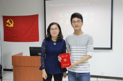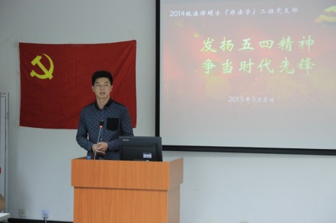 5月8日下午,法学院2014级法律硕士(非法学)2班党支部在江湾校区李兆基图书馆102培训室开展了主题为“发扬五四精神,争当时代先锋”的组织生活会。支部指导老师孔凡洲、支部全体党员、部分入党积极分子参加了本次会议。作为研工部组织生活案例大赛以及示范党支部创建工作的一部分,本次活动还邀请到了复旦大学基础医学院党委副书记韩秀引老师、法学院党委副书记罗霄老师、基础医学院寇增伟老师、2013级法律硕士(非法学)班辅导员吴承栩老师以及其他兄弟党支部代表(先进材料实验室2013级硕士生党支部、2013级法律硕士第三第四联合党支部、生命科学学院2013级硕士生第一党支部)前来参加。