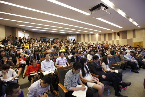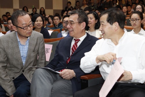 5月14日星期四,由复旦大学主办、复旦大学经济学院承办的主题为“新常态下中国经济的转型与升级:新结构经济学的视角”的学术论坛社科专场在经济学院大金报告厅举办。北京大学国家发展研究院名誉院长、政协常委林毅夫教授,复旦大学常委副校长陈晓漫教授,复旦大学大学经济学院院长张军教授,复旦大学文科科研处处长陈玉刚教授,复旦大学经济学院副院长陈诗一教授出席了此次论坛。众多热情的校友和学生也参加了论坛。论坛由复旦大学经济学院李维森教授主持,复旦大学常务副校长陈晓漫教授致辞,北京大学国家发展研究院教授、名誉院长、世界银行前首席经济学家兼高级副行长林毅夫教授作为嘉宾发表了精彩的演讲。