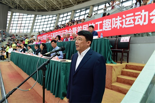 袁正宏致开幕辞,他强调了体育运动的重要性与实用性,表达了对大学生增强体质锻炼的期待。尹冬梅宣布“2014复旦大学阳光健康之星”、2013-2014群众体育先进集体、2015教工健美操比赛的获奖名单,并颁奖。最后,朱之文书记宣布“第五十五届校运会暨首届教职工趣味运动会”正式开幕,复旦大学校旗在ECHO合唱团的歌声中冉冉升起。
