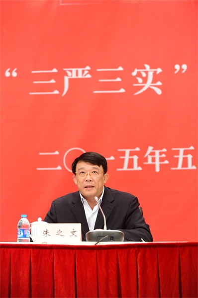 朱之文从“深刻理解‘三严三实’的重大意义和丰富内涵”、“着力解决干部队伍中存在的‘不严不实’问题”、“准确把握‘三严三实’的实践要求”以及“确保‘三严三实’专题教育扎实有效推进”四个方面讲授了党课。