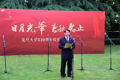 复旦大学党委书记朱之文在致辞中指出,回顾学校走过的110年奋斗历程,我们深切地感到,复旦的发展始终与我们的民族、我们的国家紧紧相连,复旦的成就与一代代复旦人的团结奋进息息相关。我校《章程》序言中有这样一句话:“大学是社会之光,与日月同辉”。复旦的光辉正是来自于我们的传统、我们的文化,来自于我们在百余年历史积淀中形成的复旦气质与复旦精神,它照耀在复旦校园的每一个角落,更印刻在每一个复旦人的心中。