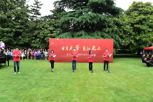 6点55分,校ECHO合唱团带来献礼校庆而作的歌曲《今生永相伴》,歌曲由校友张海宁创作,悠扬饱满的歌声唤起在场所有人对母校的拳拳真情。