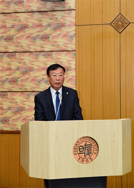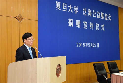 许宁生校长在致辞中感谢卢志强校董以及泛海公益基金会对复旦大学一直以来的关心和支持。他指出,复旦大学正以110周年校庆为契机,团结力量、凝聚共识,努力加快建设中国特色世界一流大学的进程,加快建设世界一流经济学科的进程,泛海公益基金会的捐赠必将为复旦早日实现这一战略目标提供强有力的支持和发展动力。许宁生强调,学校将珍惜并努力用好捐赠方的每一分钱,不辜负大家对复旦的支持与厚望。
