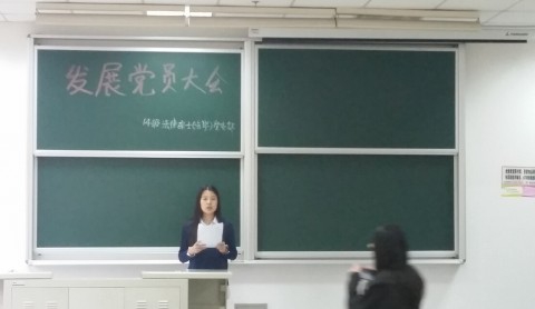 5月27日,2014级法律硕士(法学)班党支部在JB102教室召开党员发展大会,对班级4名同学申请成为预备党员进行审核。会议在党支部书记的主持下进行,共分为新党员申请对象宣读《入党志愿书》、党支部全体党员决议、预备党员发表感言三个环节。
