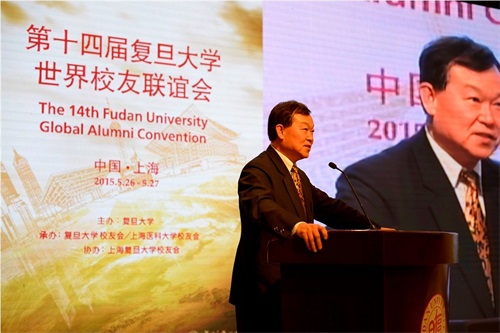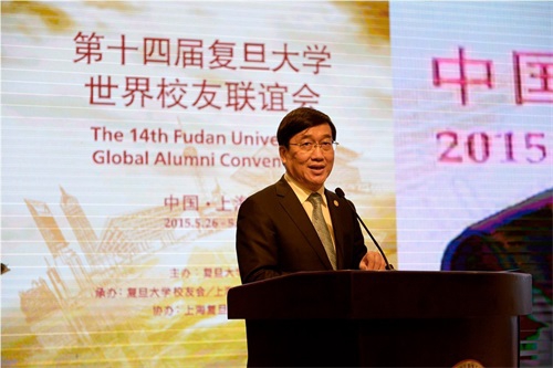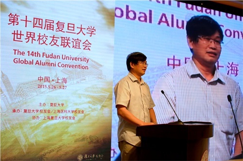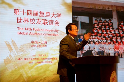 5月26号下午,由复旦大学主办,复旦大学校友会、上海医科大学校友会承办,上海复旦大学校友会协办的第十四届复旦大学世界校友联谊会在复旦大学邯郸校区光华楼隆重举行。复旦大学党委书记朱之文,复旦大学校长、复旦大学校友会会长许宁生,复旦大学副校长、复旦大学校友会副会长兼秘书长冯晓源,上海医科大学校友会会长、复旦大学克卿书院院长彭裕文,复旦大学校友会各理事,海内外校友会代表等400余名复旦校友由世界各地汇聚上海,共庆母校建校110周年诞辰。78级历史系校友、著名媒体人曹景行,14级新闻学院硕士生许多担任大会主持。