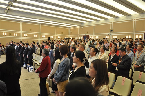 世联会筹备期间,复旦大学校友会发起“Sing for Fudan”网络校庆活动,鼓励世界各地校友为母校录制校歌,采集并剪辑成《Sing for Fudan》主题视频,成为本次世联会的压轴片。随着主题片的播放,悠扬校歌徐徐响起,全体校友起立,同唱校歌,至此,第十四届世界校友联谊会正式落下帷幕。